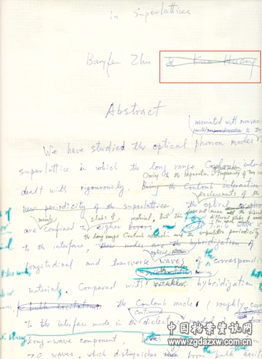 黄昆修改的《超晶格中的光学声子》论文(部分)