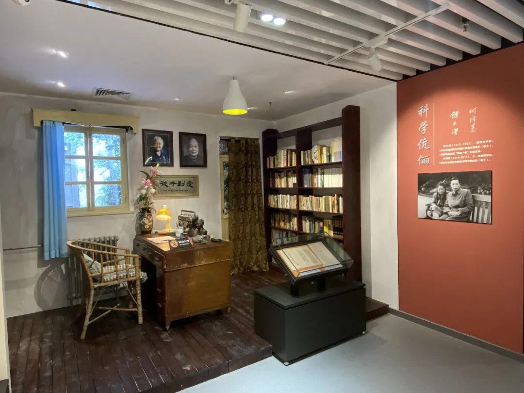该场景真实还原了科学伉俪——钱三强和何泽慧夫妇家中书房的一角,其中包括钱三强的父亲钱玄同给他题写的四个字“从牛到爱”,以及他们夫妇曾使用过的物品。