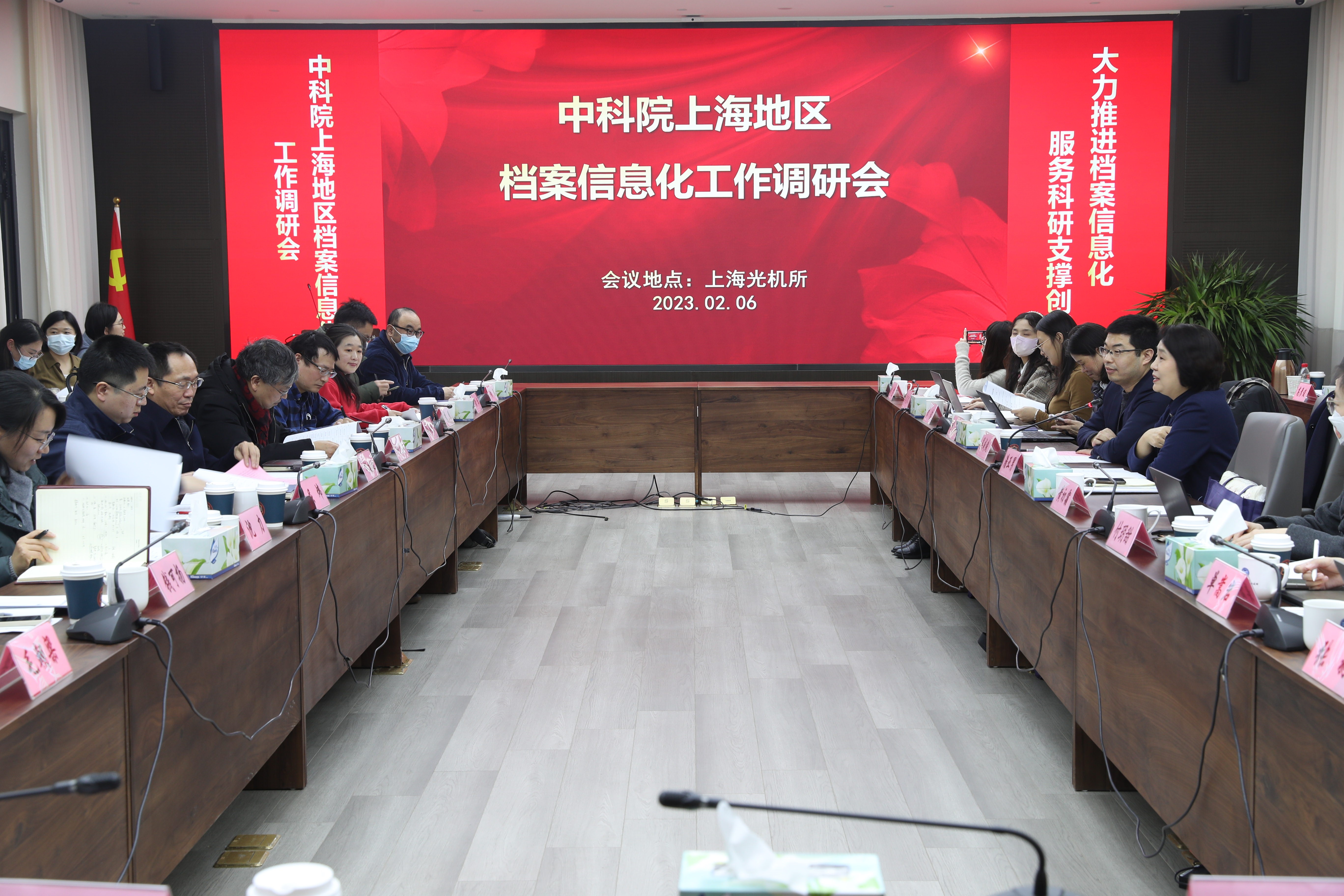 为加快档案工作数字转型,推进《中国科学院“十四五”档案工作发展规划》档案信息化工作任务部署与落实,2月6日,中国科学院档案馆会同上海分院赴上海光机所调研档案信息化工作。上海分院副院长、分党组成员吴成铁出席会议并讲话,上海光机所党委书记邵建达致辞,上海分院系统13家单位档案工作分管领导、档案工作主管部门负责人和档案人员约50人参加会议。