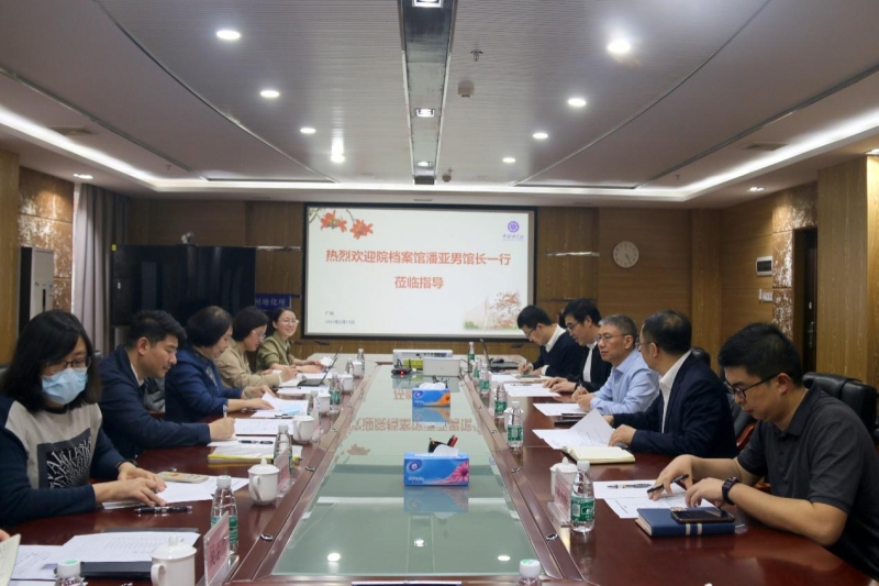 2月13日,中国科学院档案馆潘亚男馆长一行到广州地化所调研档案工作。广州地化所党委书记、副所长张海祥和副所长王强等出席。调研会由科技与平台处处长田辉主持。