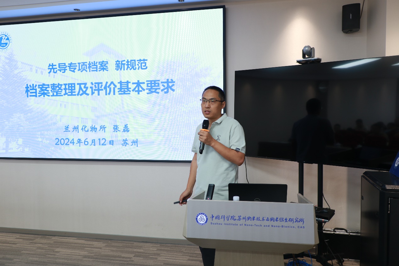 6月12日研究所举办先导专项档案主题讲座暨2024年档案归档启动会,会议邀请了兰州化物所档案专家副研究馆员张磊作了《先导专项档案新规范——档案整理及评价基本要求》报告,介绍了在先导新规范下档案分类及组卷规范、归档文件参考范围、文件整理重点事项以及著录规范和移交系统的填写等内容,事无巨细,干货满满。全所30多位兼职档案员现场参会。