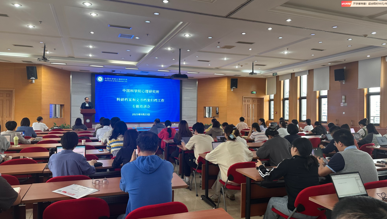 为提高全所人员的档案意识,规范研究所档案管理工作,加强档案专兼职人员队伍建设,9月23日下午,中国科学院心理研究所在和谐楼九层报告厅举办了科研档案和文书档案归档工作专题培训会。会议由心理所综合办公室主任张永博和综合档案管理员杨光炬主持,纪委书记刘斌作动员讲话,全所各科研单元/职能部门的负责人、兼职档案员和其他相关人员共计74人参训。