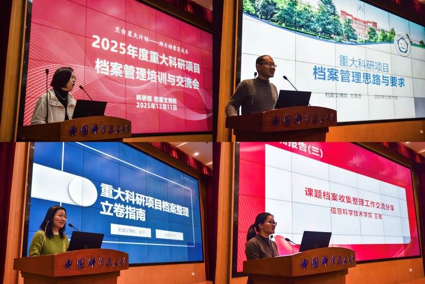 12月11日上午,为保障学校抢占科技制高点专项、中国科学院战略性先导科技专项、国家重点研发计划等重大科研项目的组织实施,规范和加强项目档案管理工作,档案文博院、科研部联合召开2025年度重大科研项目档案管理培训与交流会暨科研项目优秀兼职档案员表彰会,相关科研助理和兼职档案员140余人现场参与。会议由科研部副部长刘静主持。