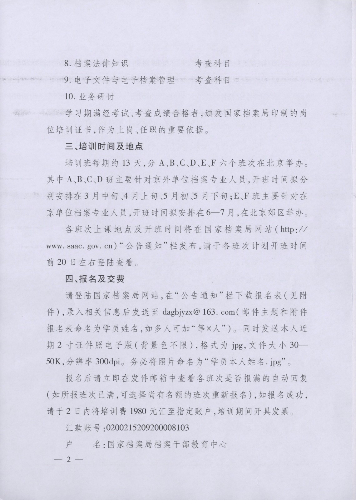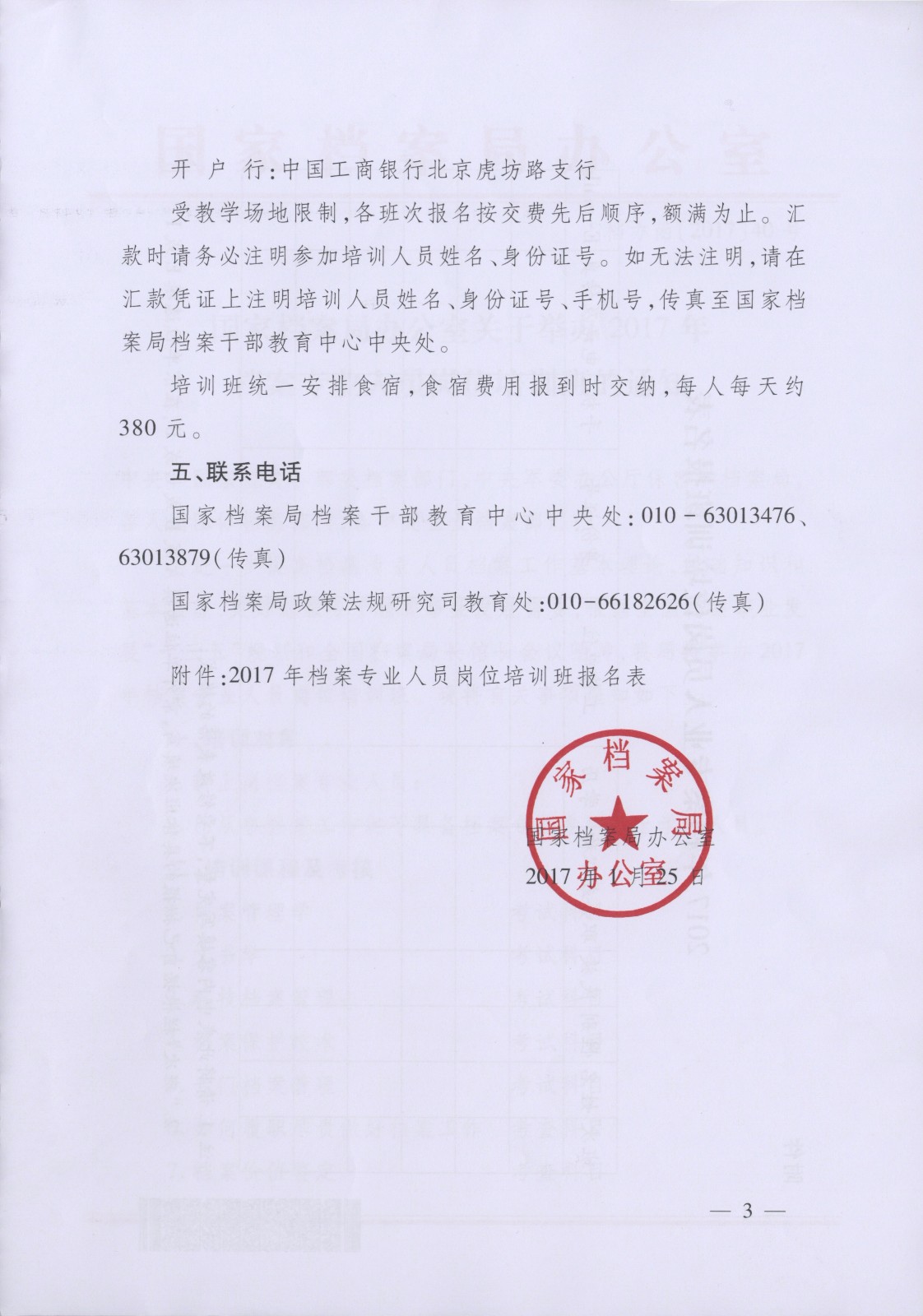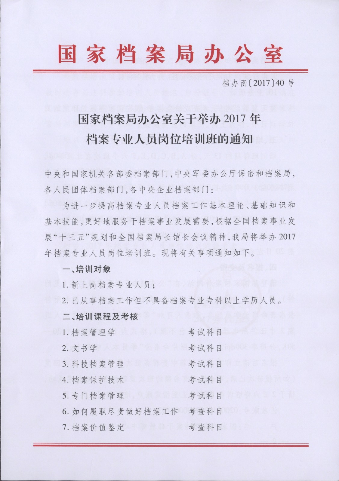 国家档案局办公室关于举办2017年档案专业人员岗位培训班的通知