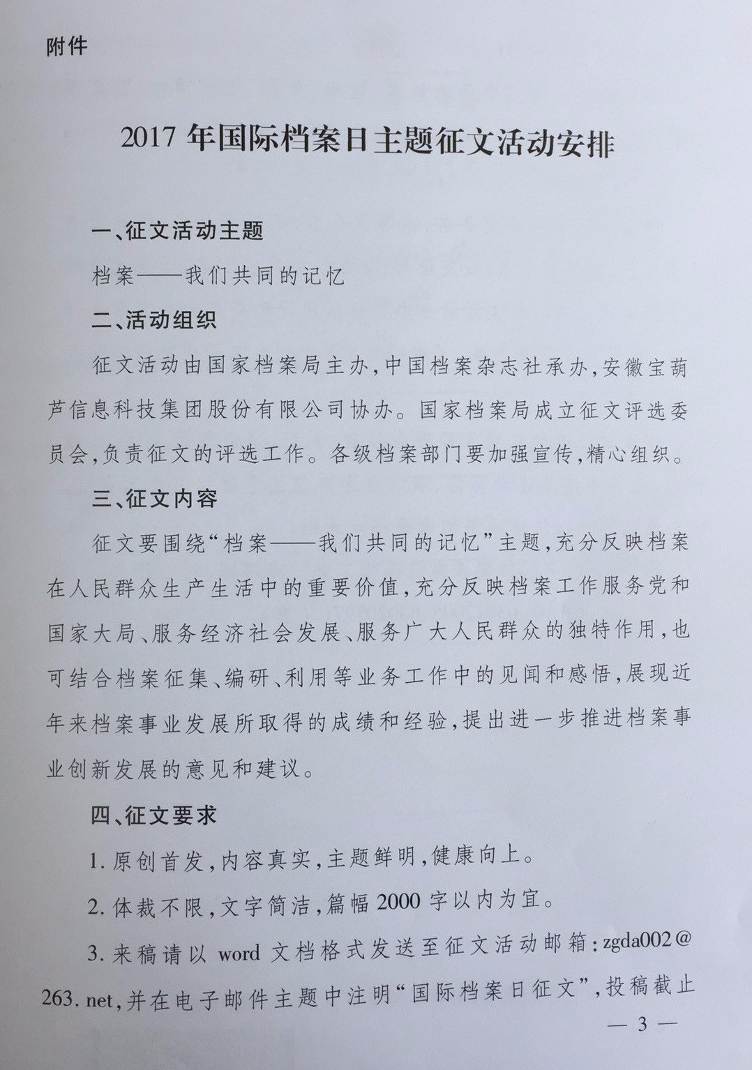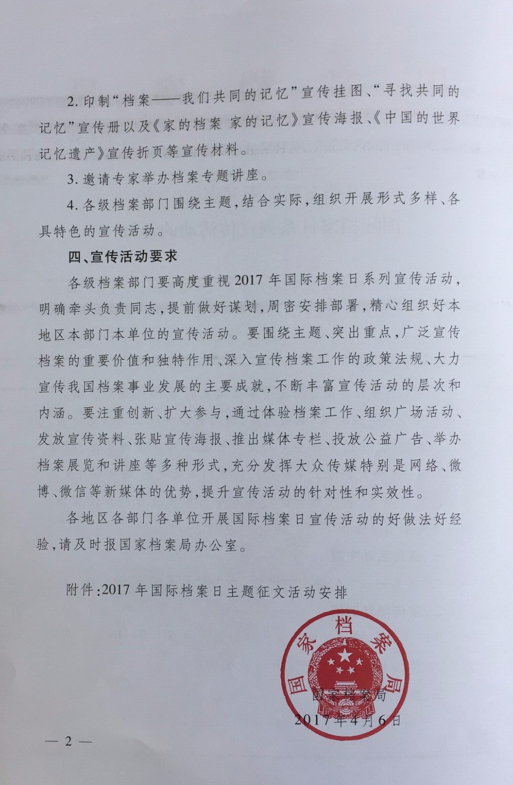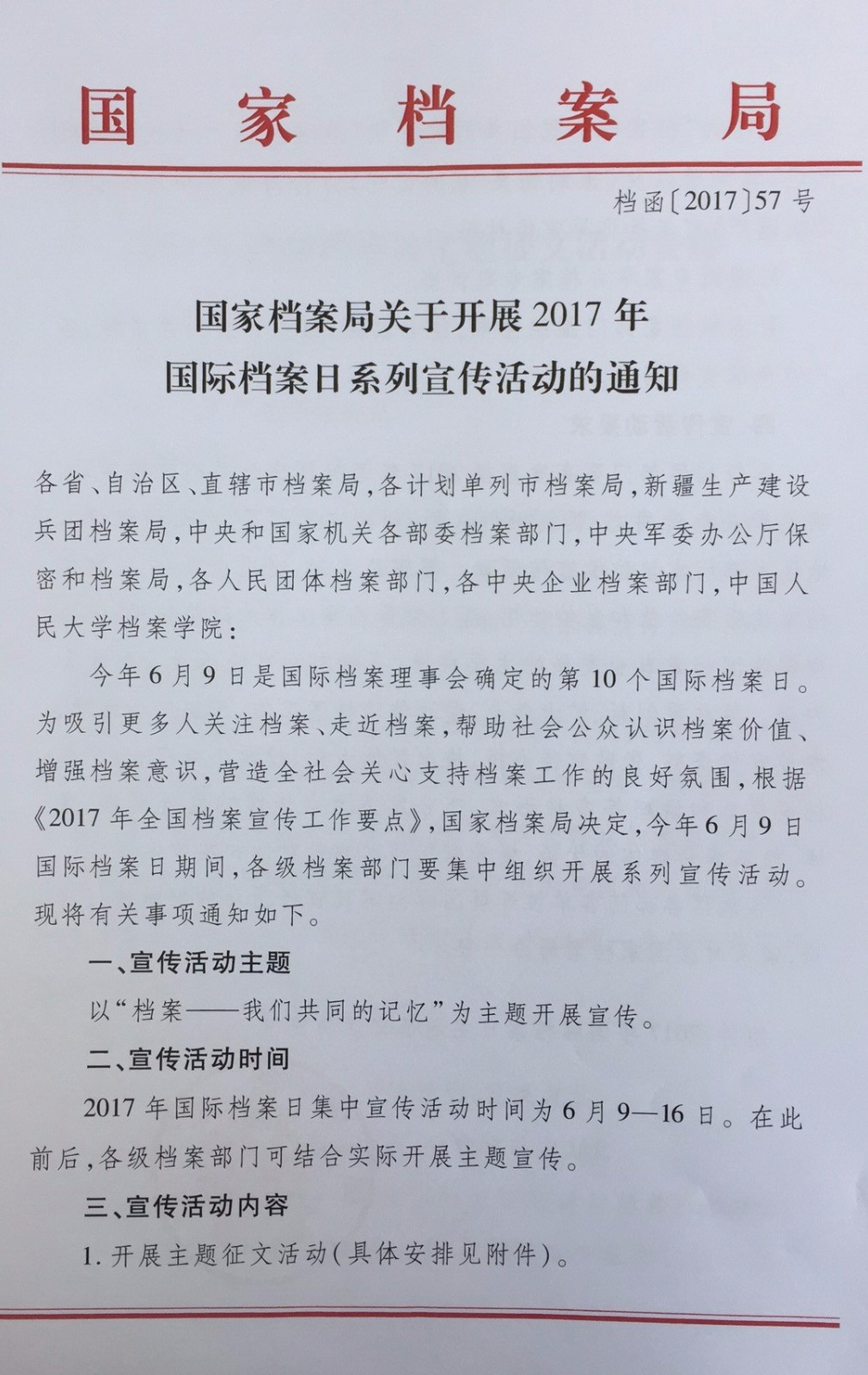 国家档案局关于开展2017年国际档案日系列宣传活动的通知