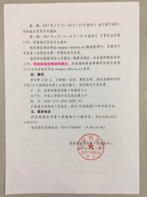 国家档案局档案干部教育中心关于举办档案管理规范化建设培训班的通知