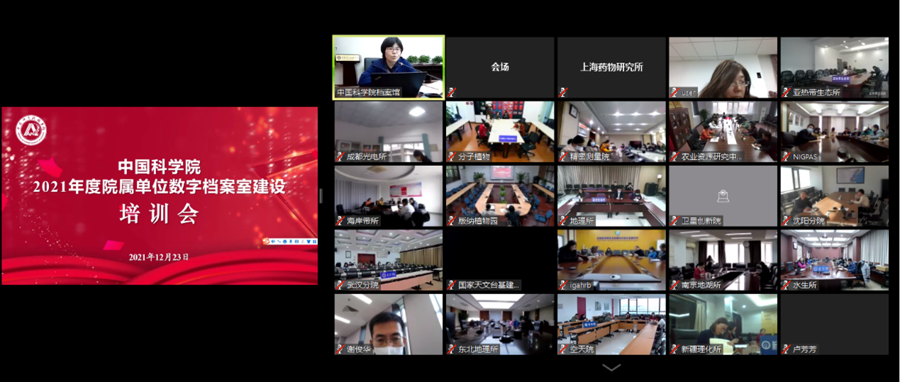 2021年12月23日-24日,中国科学院档案馆组织举办了2021年院属单位数字档案室建设视频培训。来自119家院属单位的千余名档案部门负责人、档案人员、科研项目管理人员和信息化人员参加了培训。