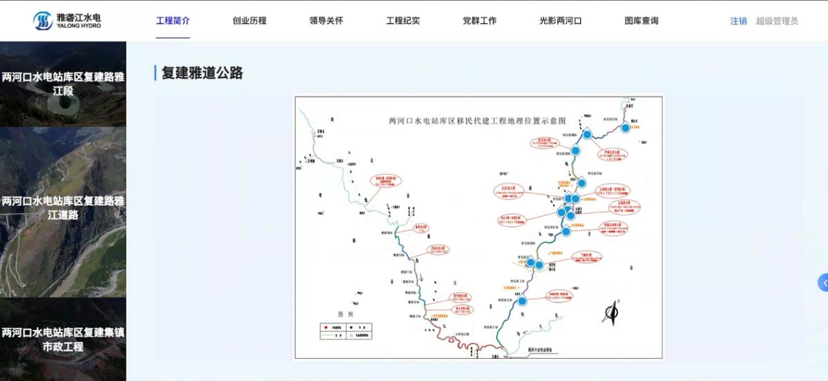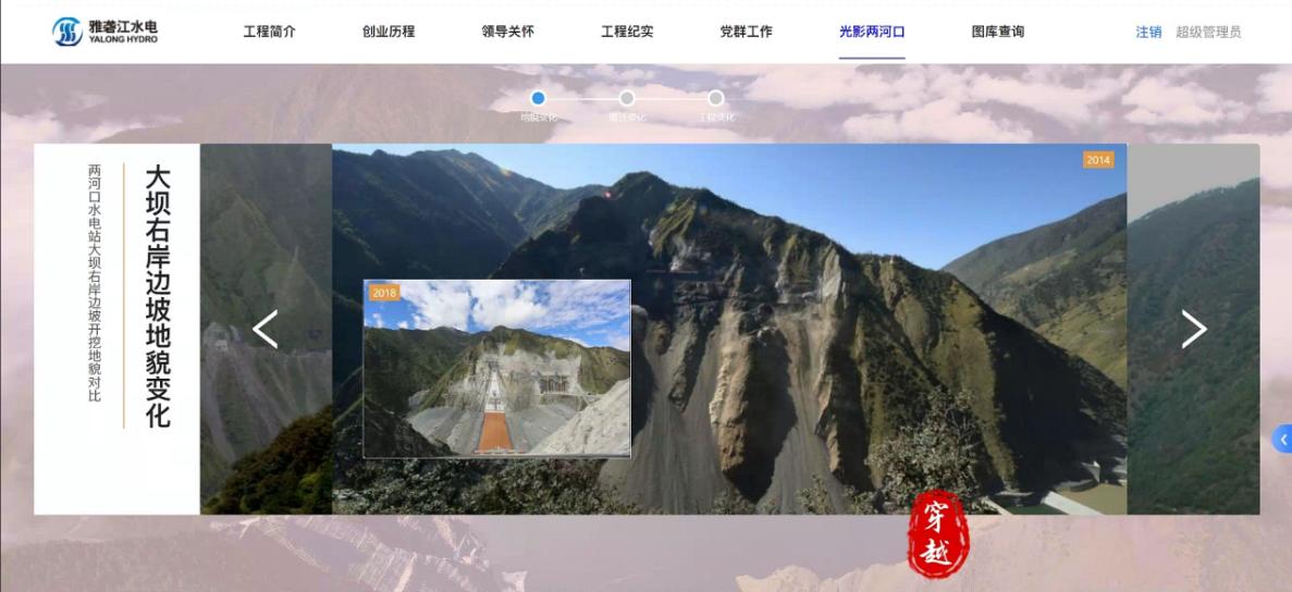 2.打破时空维度开展照片档案资源利用开发,采取直观形式展现。基于时空分布的“记忆地图”,将电站主体工程和移民代建工程不同标段的照片资源按时间、空间信息对应分布到施工地图点位上展示。“大事记”板块按时间顺序呈现发展脉络,图文并茂地梳理呈现两河口水电站自2004年以来具有重要节点意义的活动事件。“今昔对比”板块通过古今照片同屏对比的形式展示某一地点的地貌、搬迁、工程变化,体现工程建设前后的巨大变迁。