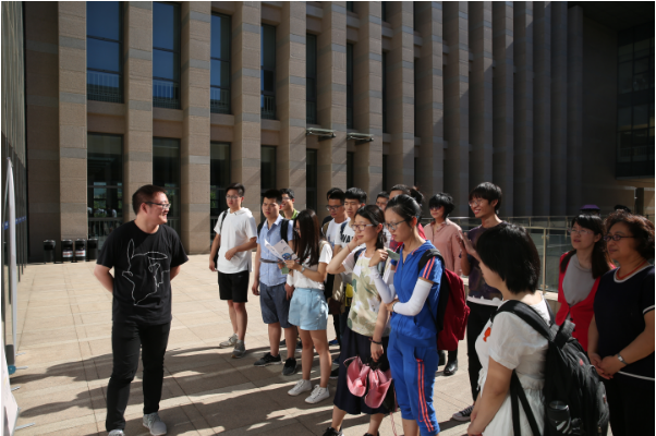 讲解员在展厅向师生进行中国科学院研究生教育发展历程的讲解