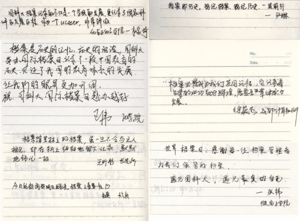 "档案即历史,铭记档案,铭记历史,一直前行”正如这位同学留言。本次围绕“国际档案日”举办的系列宣传活动,旨在让更多的师生了解学校历史和演变,留住一所学校的记忆。不忘历史,不忘初心,让我们同档案一起前行,在国科大遇见更好的自己。