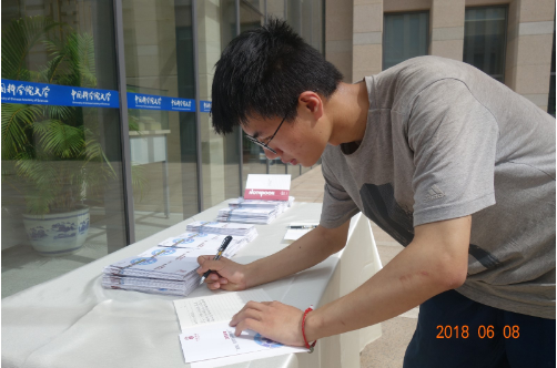 参观完展览,师生们意犹未尽,纷纷在留言本上写下了自己的感想与寄语。“四十年风雨磨砺,国科大一路前行,祝国科大的未来更加美好”、“三生有幸,在最美的年华遇见你,我的国科大”、 “祝国科大的各项工作越来越好,学弟学妹更加优秀”。句句话语饱含着师生们对国科大的深情厚谊,发自内心的祝福和期盼填满了留言本。