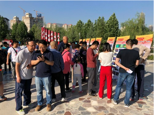 兰州南湖公园内职工通过手机微信开展有奖知识答题