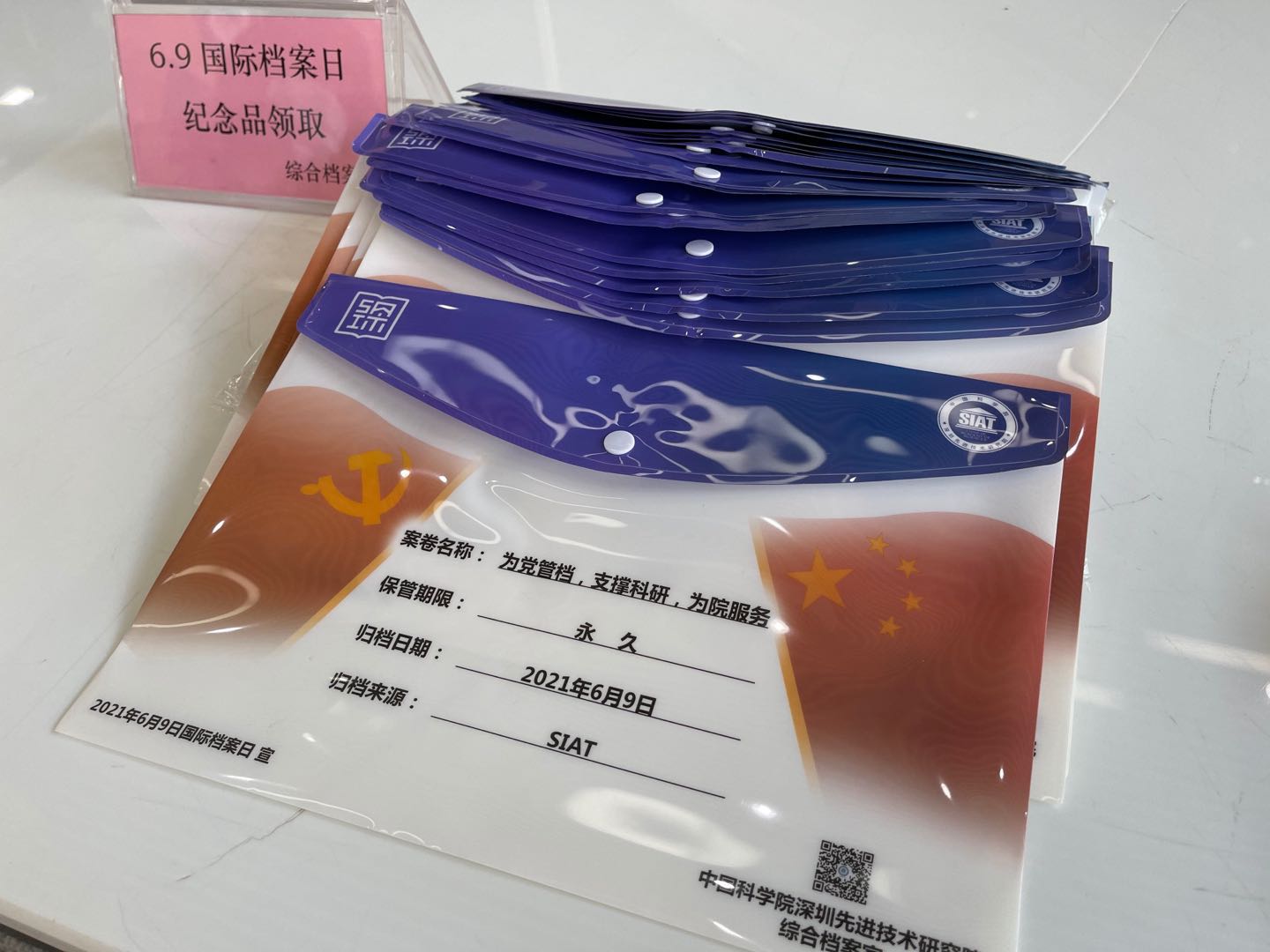 深圳先进院组织了“档案与党”征文活动,定制创意十足的档案日宣传文件袋;并与党群处共同梳理制作《从档案中寻找初心使命》微视频宣传。
