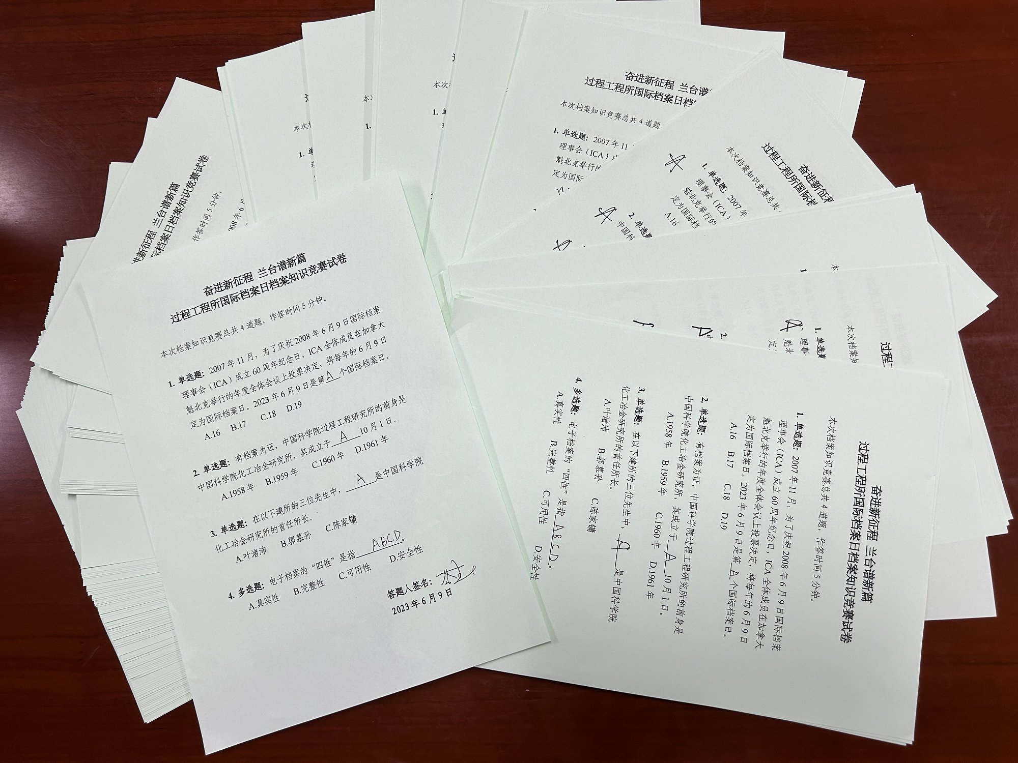 为庆祝第十六个国际档案日,6月5日-16日,过程工程所围绕“奋进新征程 兰台谱新篇”主题,举办系列宣传活动,引领全所职工和学生以史为鉴察往知来,在砥砺奋进新征程中以昂扬的精神面貌勇毅前行。本次系列活动包括老科学家视频档案展、档案盒和档号章等新样式亮相、档案词云图文创鼠标垫展示、专题讲座、档案知识竞赛、征文征寄语征建议等多种形式。