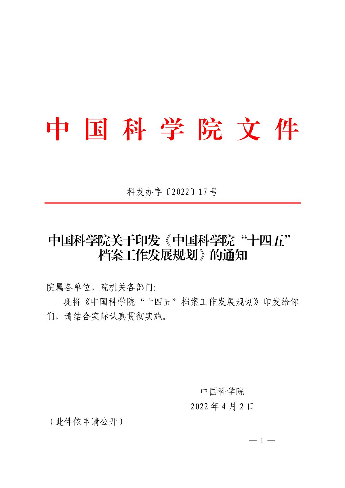 《中国科学院“十四五”档案工作发展规划》(科发办字〔2022〕17号)