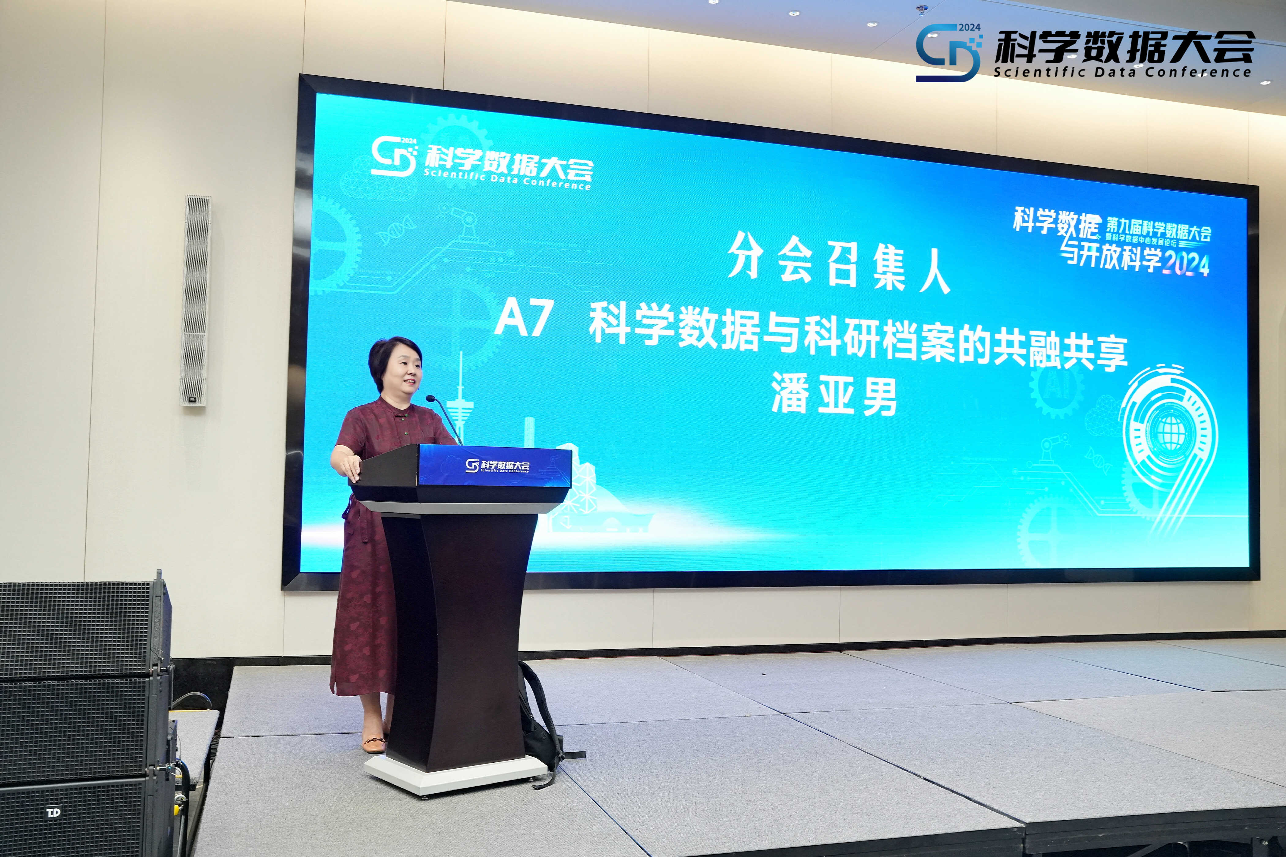 2024年9月20下午,在第九届科学数据大会活动期间,中国档案学会科技档案与科学数据管理学术委员会(以下简称“委员会”)和中国科学院档案馆联合组织举办了“科学数据与科研档案的共融共享”(A7)分论坛。分论坛由委员会主任委员潘亚男、副主任委员刘越男、委员马俊才担任召集人,副主任委员蒋君仁出席会议,特邀嘉宾、委员会委员、档案管理和数据管理领域的学者与工作者共40余人参会。分论坛由潘亚男主任委员和张静秘书长分阶段主持,潘亚男在大会闭幕式进行了分论坛总结交流。
